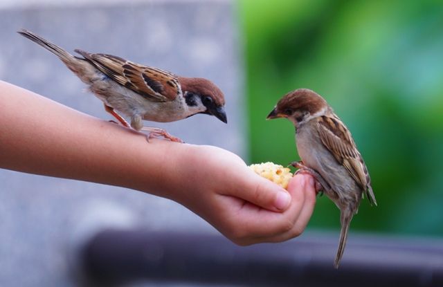 スズメって警戒心が強いから、人の手に止まるのって
